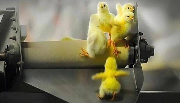 随着发达国家经济的发展,人们对动物福利的关注逐渐升高,尤其是对那些被关在鸡场里的动物。在这些养殖场,很多做蛋生产的企业采用了一些极为残忍的做法,尤其是针对雄性小鸡的处理。在这些场所,每年约有70亿只刚孵化的小鸡被直接送往绞肉机,它们的肉被用来制作宠物饲料。而这些小鸡,几乎全是雄性。